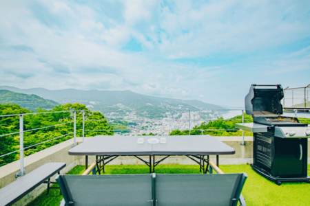絶景オーシャンビューのジャグジー、BBQ場!!商業施設などを手掛けるデザイナーによる建築の別荘は、熱海の美しい海と市街地を一望できる、特別なロケーション。昼は煌めく青い海、夜は幻想的な夜景と花火大会を贅沢に楽しめます。